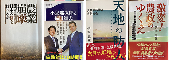 写真=〈小泉農政劇場〉を読み解く「農業崩壊」「小泉進次郎と福田達夫「天地の防人」の三冊と筆者最新刊「激変!農政のゆくえ」
