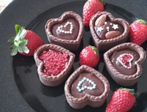 【材料】3cm程度のタルト生地(焼いてあるもの)生クリーム 60mlチョコレート 150g焼いてあり、そのまま使用できる市販のタルト生地 適量<飾り用>ナッツやアラザンなど 適宜